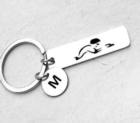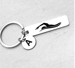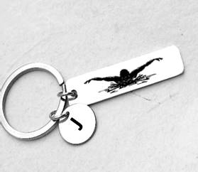 LLavero con diseños de los estilos y gráficos de natación grabados con laser / Material: Acero Inoxidable / Medida: 3.5 cm largo x 1.2 cm ancho – círculo 1.5cm diámetro // Elige tu Estilo, los 4 juntos  o el gráfico de delfín con nadador y para PERSONALIZARLO incluye la inicial que se grabará en el círculo // Pon en COMENTARIOS al hacer tu pedido CRAWL, DORSO, PECHO, MARIPOSA, 4 ESTILOS, DELFÍN según sea tu elección y la INICIAL o comunícate por Whatsapp.