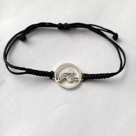 Pulsera Unisex de Natación con el estilo de Pecho, elaborado en Plata 925 y tejido macramé ajustable.