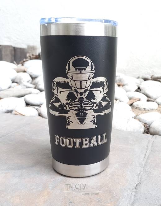 Vaso Térmico de 20 oz. para frío y calor. Con motivos de football americano. Grabado laser. Si quieres que se personalice con tu nombre contáctanos.
